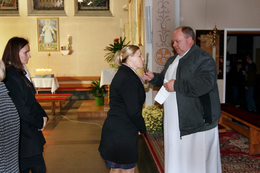 Na modlitwie była grupa parafian, a śród nich dzieci klasy trzeciej, które przygotowują swoje serduszka na Dzień Pierwszej Komunii Świętej. Błogosławiona Karolina jest Patronką czystych serc. Wśród modlących się byli też uczniowie klasy VIII, przygotowujący się do Bierzmowania. Modlitwę przeplataliśmy refrenem pieśni „Cudowny Kwiecie polskiej ziemi”, napisanej przez ks. profesora Kazimierza Pasionka na dzień ogłoszenia Karoliny Błogosławioną - było to podczas trzeciej pielgrzymki Św. Jana Pawła II do Polski. Papież gościł wtedy m.in. Tarnowie i podczas Mszy Świętej (dzisiaj stoi tam kościół bł. Karoliny) w dniu 10 czerwca 1987 roku następca Św. Piotra ogłosił Karolinę Błogosławioną... Naszą modlitwę zakończyliśmy ucałowaniem relikwii Błogosławionej.