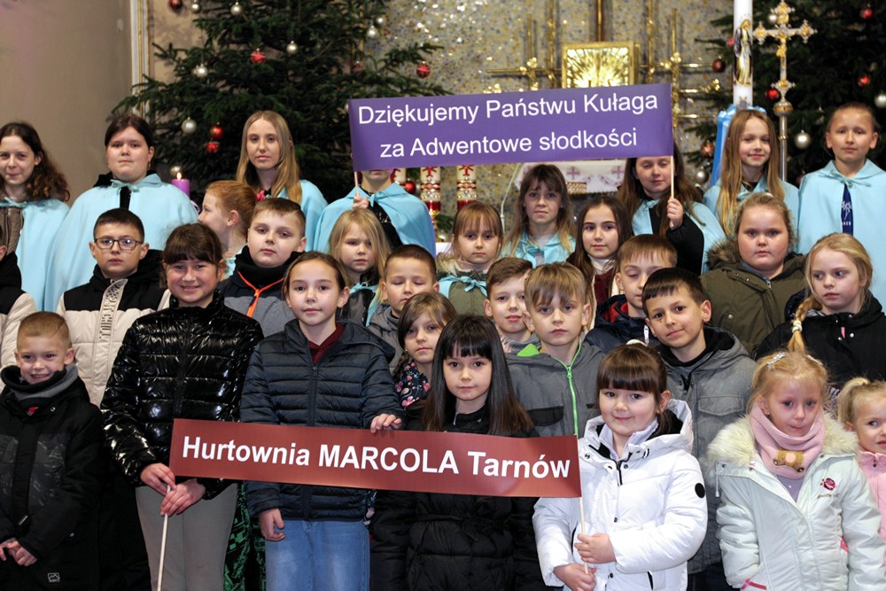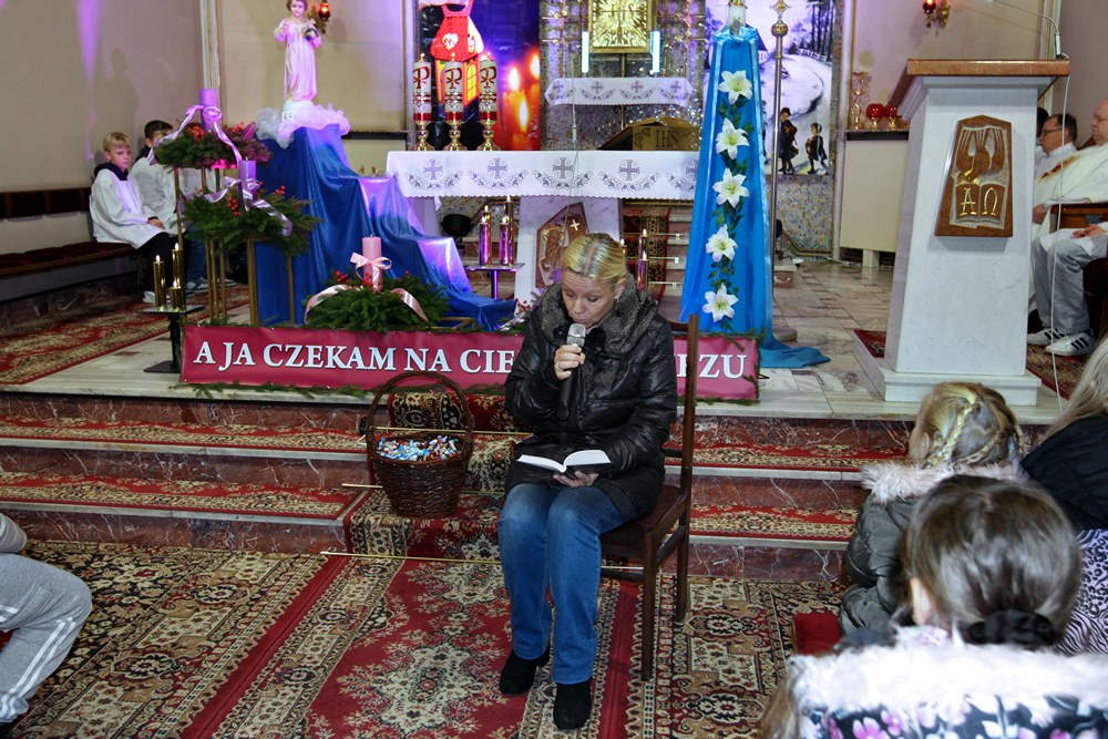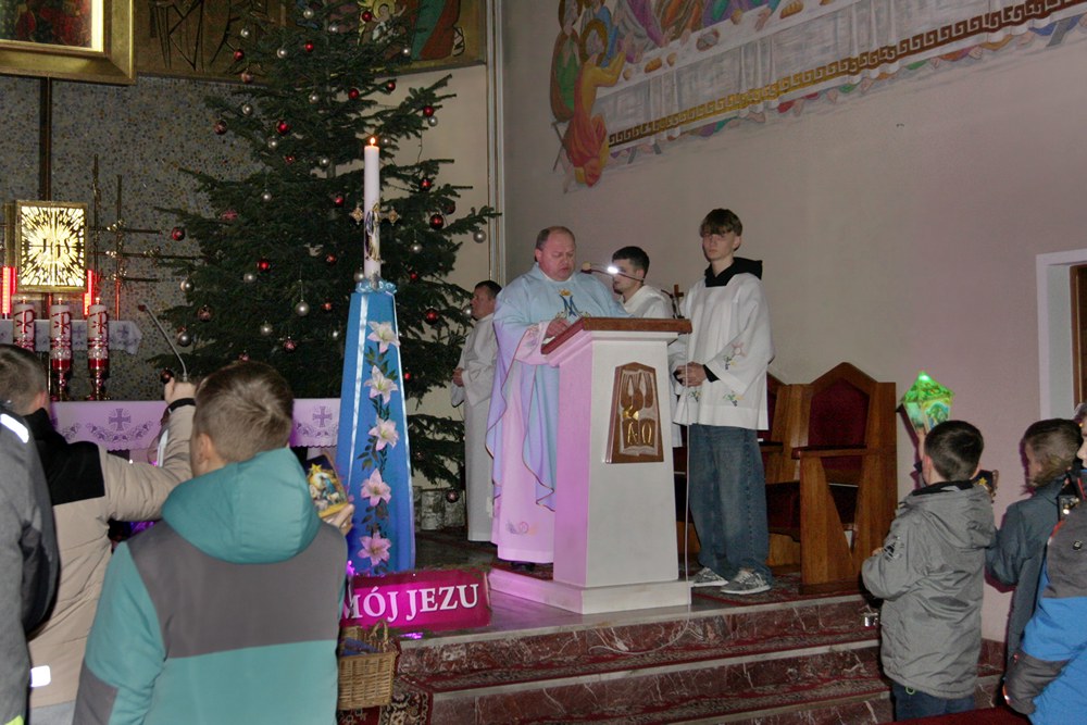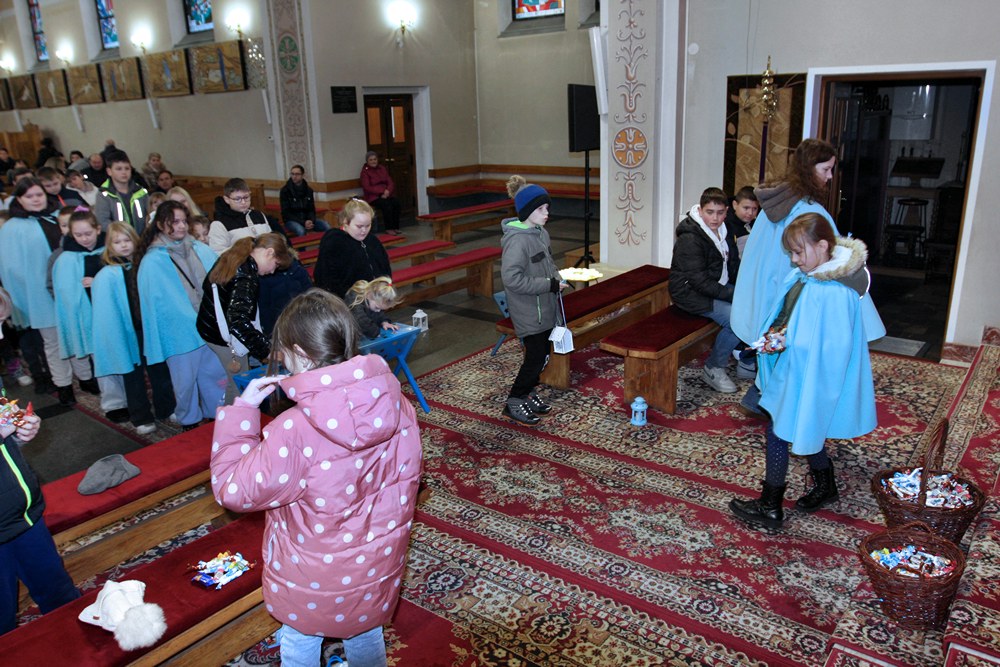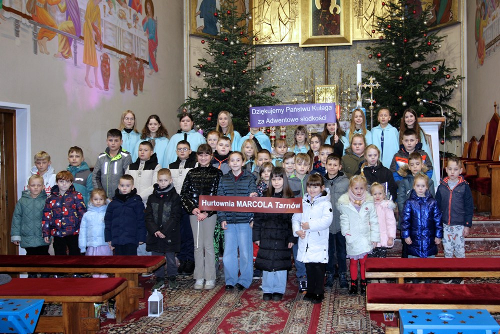 Podjęliśmy więc, jako parafia, ten czas radosnego oczekiwania na przyjście Chrystusa. Przygotowaliśmy adwentowe dekoracje, zaplanowaliśmy świąteczną spowiedź, a jednym z najważniejszych wydarzeń adwentowego oczekiwania był nasz udział we Mszach, odprawianych w dni powszednie tego okresu, zwanych Roratami. Nowością było to, że Roratyodprawialiśmy przede wszystkim wieczorem o godzinie 17:00. Skutkiem tego był fakt, że około 70 dzieci uczestniczyło w tym Nabożeństwie. Mogły też w każde Roraty zabierać fragment adwentowej wyklejanki (całość to bożonarodzeniowa szopka); mogły też wylosować figurkę Dzieciątka Jezus, a to wiązało się ze słodyczami, które dzieci otrzymywały po każdych Roratach. Słodycze i inne łakocie mieliśmy dzięki anonimowym ofiarodawcom, a przede wszystkim dzięki Państwu Krzysztofowi i Annie Kułaga – naszym parafianom, właścicielom Hurtowni Marcola w Tarnowie. To już nie pierwszy raz, gdy okazali nam Wielkie Serce. Jesteśmy Im i wszystkim innym bardzo wdzięczni. Bóg zapłać!