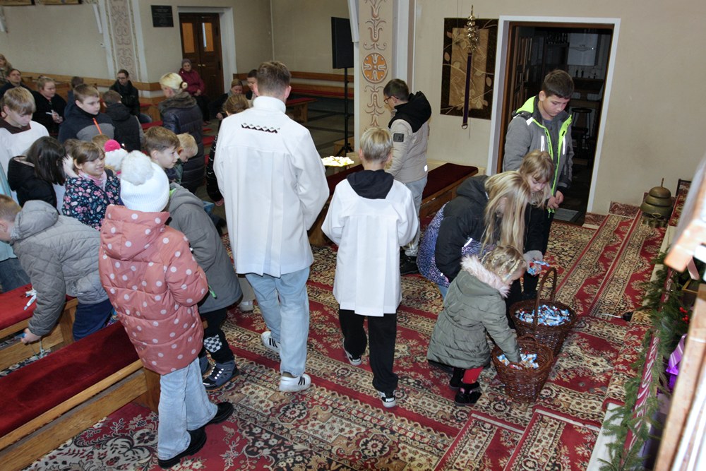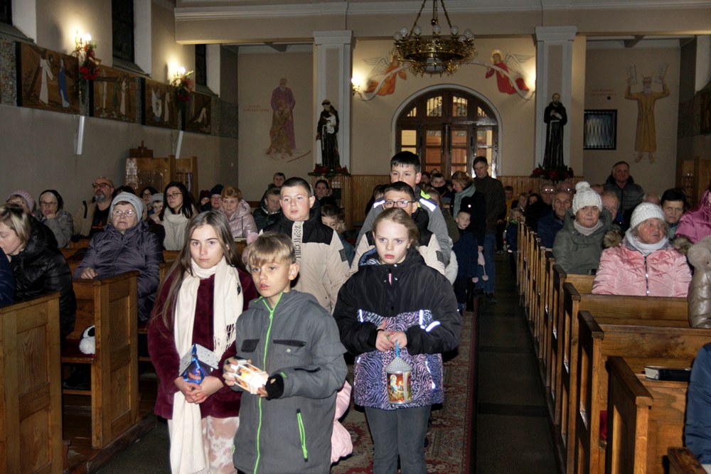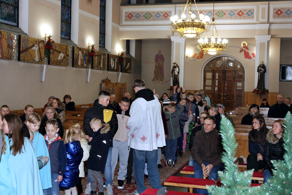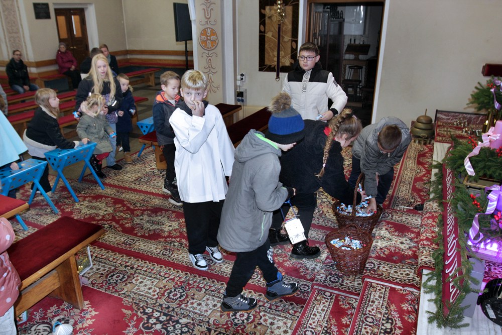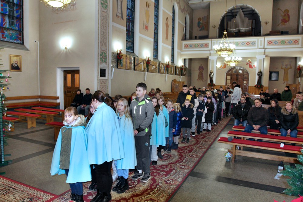 Podjęliśmy więc, jako parafia, ten czas radosnego oczekiwania na przyjście Chrystusa. Przygotowaliśmy adwentowe dekoracje, zaplanowaliśmy świąteczną spowiedź, a jednym z najważniejszych wydarzeń adwentowego oczekiwania był nasz udział we Mszach, odprawianych w dni powszednie tego okresu, zwanych Roratami. Nowością było to, że Roratyodprawialiśmy przede wszystkim wieczorem o godzinie 17:00. Skutkiem tego był fakt, że około 70 dzieci uczestniczyło w tym Nabożeństwie. Mogły też w każde Roraty zabierać fragment adwentowej wyklejanki (całość to bożonarodzeniowa szopka); mogły też wylosować figurkę Dzieciątka Jezus, a to wiązało się ze słodyczami, które dzieci otrzymywały po każdych Roratach. Słodycze i inne łakocie mieliśmy dzięki anonimowym ofiarodawcom, a przede wszystkim dzięki Państwu Krzysztofowi i Annie Kułaga – naszym parafianom, właścicielom Hurtowni Marcola w Tarnowie. To już nie pierwszy raz, gdy okazali nam Wielkie Serce. Jesteśmy Im i wszystkim innym bardzo wdzięczni. Bóg zapłać!