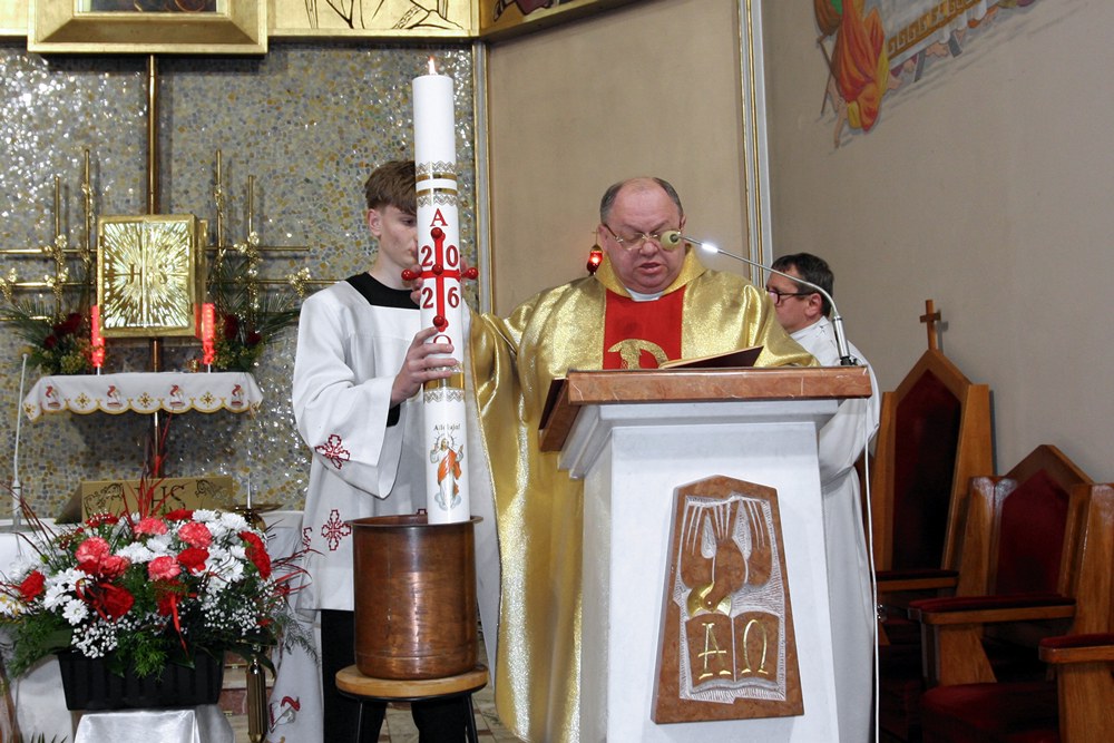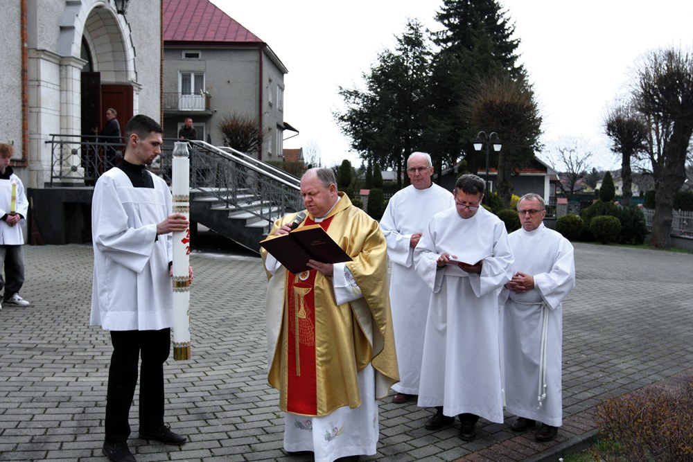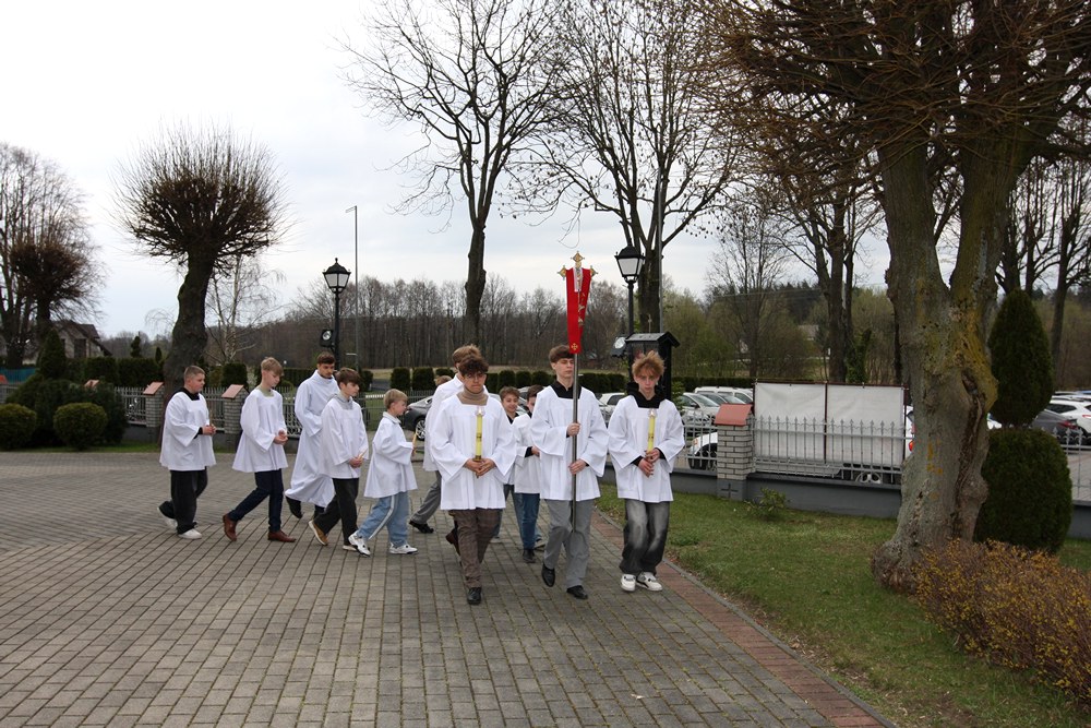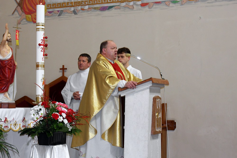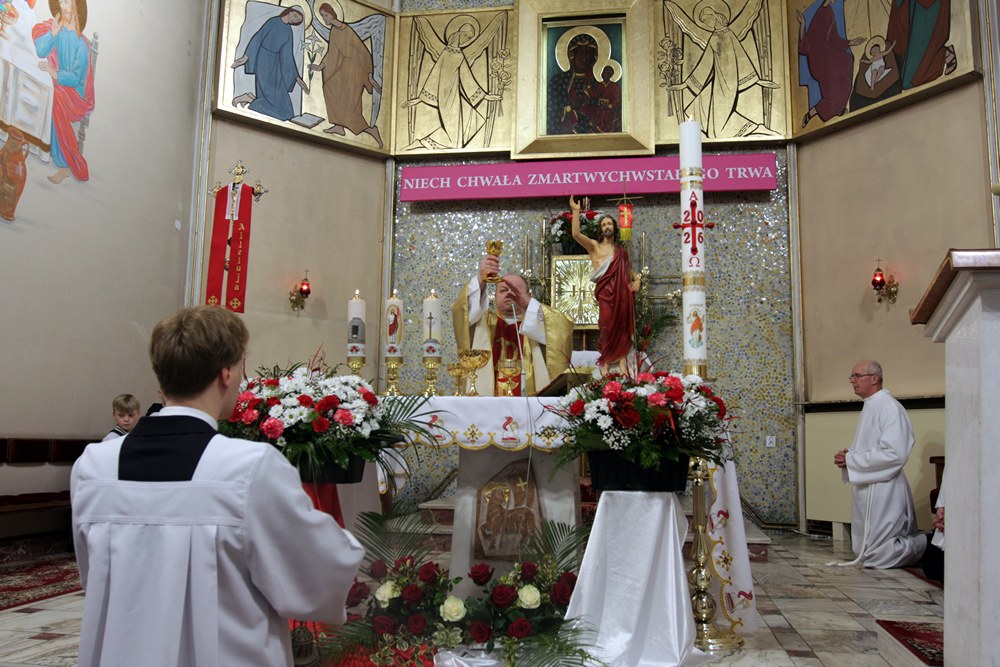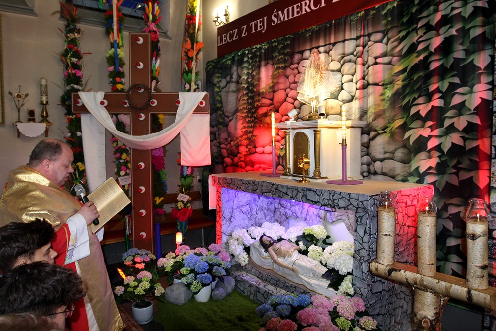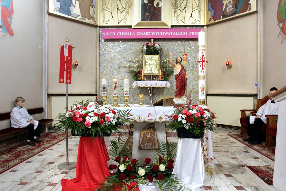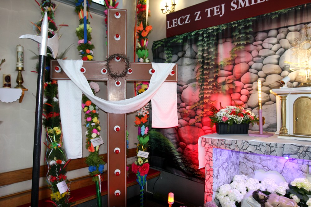 Wielu naszych parafian, poprzez udział w Rekolekcjach Wielkopostnych, dobrze przygotowało serce na te ważne dni. Sama obecność na Nabożeństwach Triduum Paschalnego zbliżała nas do Jezusa cierpiącego, ale i Zmartwychwstałego. Na szczególna uwagę zasługuje Msza Św. Wieczerzy Pańskiej z Wielkiego Czwartku – zamówiona, jak co roku, przez Członkinie Koła Komunii Świętej Wynagradzającej p. Marii Malec. Dziękując za Kaplanów, modliliśmy się o nowe powołania, również z naszej parafii. Cieszyliśmy się się, że wielu parafian pięknie przeżyło Drogę Krzyżową z Wielkiego Piątku. Od parunastu lat to „mocny punkt” naszej lokalnej pobożności. Wielu parafian przybyło w Wielka Sobotę, aby pobłogosławić pokarmy i zabrać do domu święconą wodę. I wreszcie wigilia Paschalna i, o niedzielnym poranku, sama Rezurekcja. Pan Bóg dał w tym roku dobra pogodę, więc i starszym było łatwiej dotrzeć do kościoła. W drugi dzień Świąt czyli wielkanocny poniedziałek, ksiądz proboszcz miał o czym mówić podczas podziękowań. Z ambony padły takie słowa: