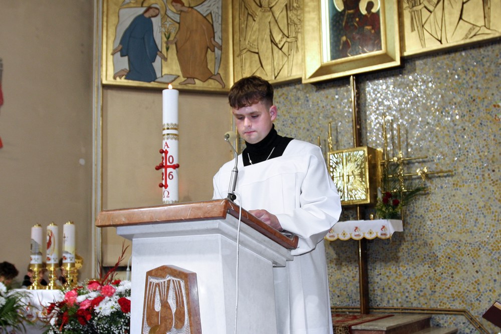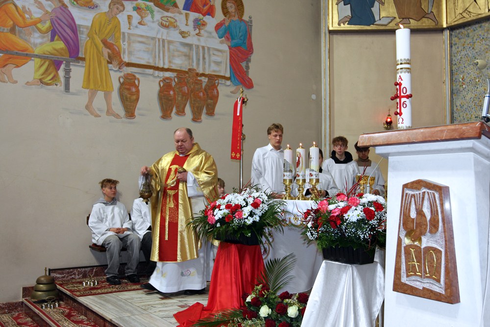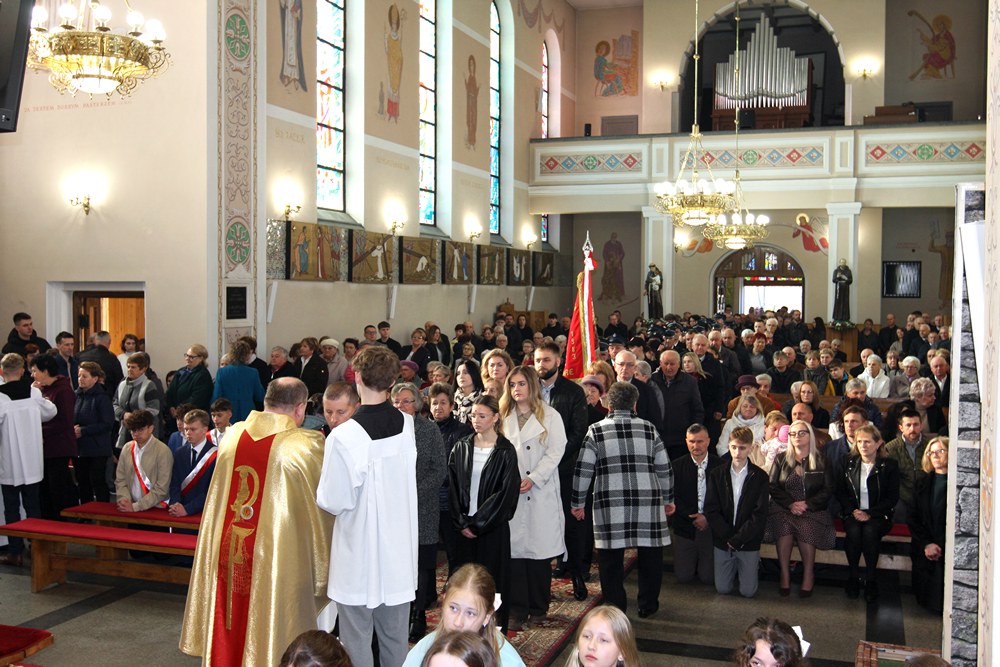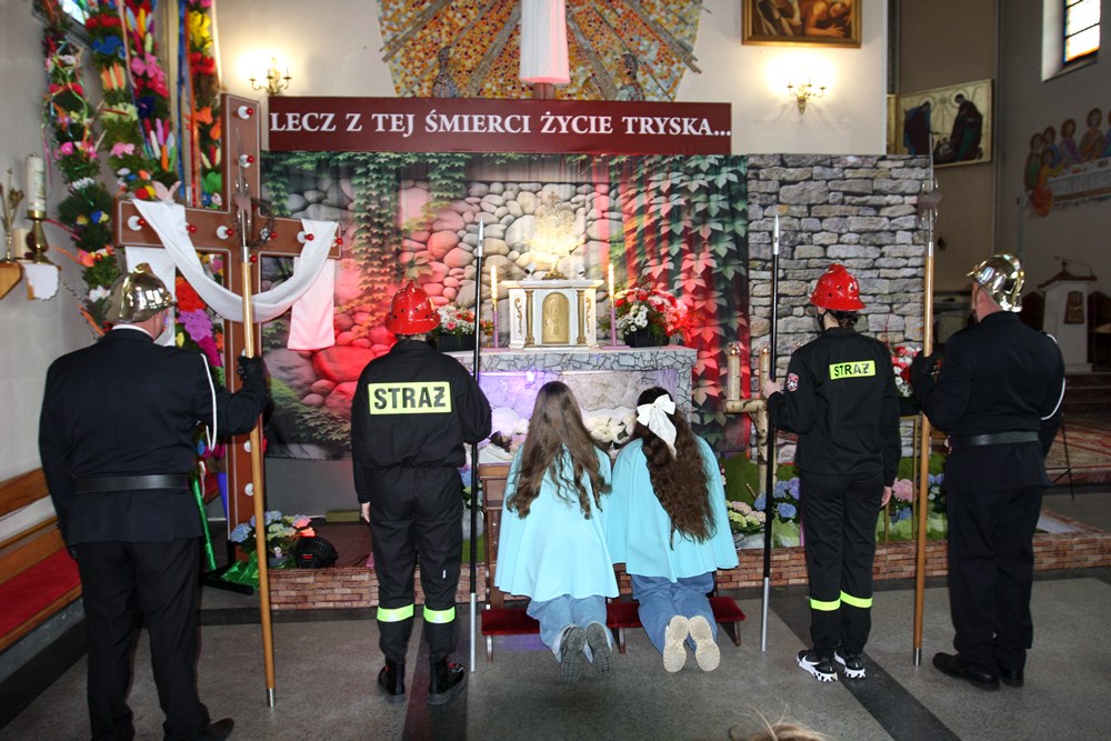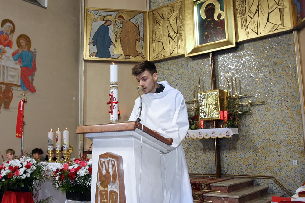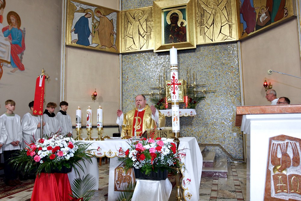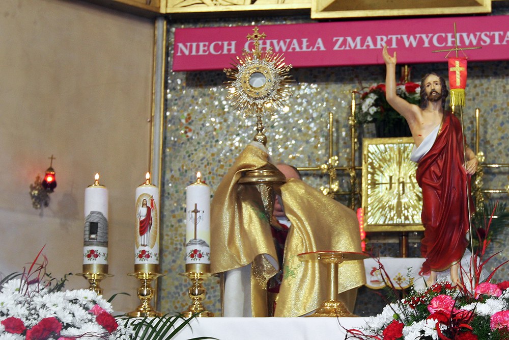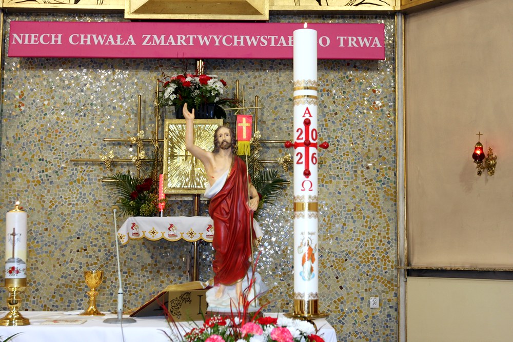 Wielu naszych parafian, poprzez udział w Rekolekcjach Wielkopostnych, dobrze przygotowało serce na te ważne dni. Sama obecność na Nabożeństwach Triduum Paschalnego zbliżała nas do Jezusa cierpiącego, ale i Zmartwychwstałego. Na szczególna uwagę zasługuje Msza Św. Wieczerzy Pańskiej z Wielkiego Czwartku – zamówiona, jak co roku, przez Członkinie Koła Komunii Świętej Wynagradzającej p. Marii Malec. Dziękując za Kaplanów, modliliśmy się o nowe powołania, również z naszej parafii. Cieszyliśmy się się, że wielu parafian pięknie przeżyło Drogę Krzyżową z Wielkiego Piątku. Od parunastu lat to „mocny punkt” naszej lokalnej pobożności. Wielu parafian przybyło w Wielka Sobotę, aby pobłogosławić pokarmy i zabrać do domu święconą wodę. I wreszcie wigilia Paschalna i, o niedzielnym poranku, sama Rezurekcja. Pan Bóg dał w tym roku dobra pogodę, więc i starszym było łatwiej dotrzeć do kościoła. W drugi dzień Świąt czyli wielkanocny poniedziałek, ksiądz proboszcz miał o czym mówić podczas podziękowań. Z ambony padły takie słowa: